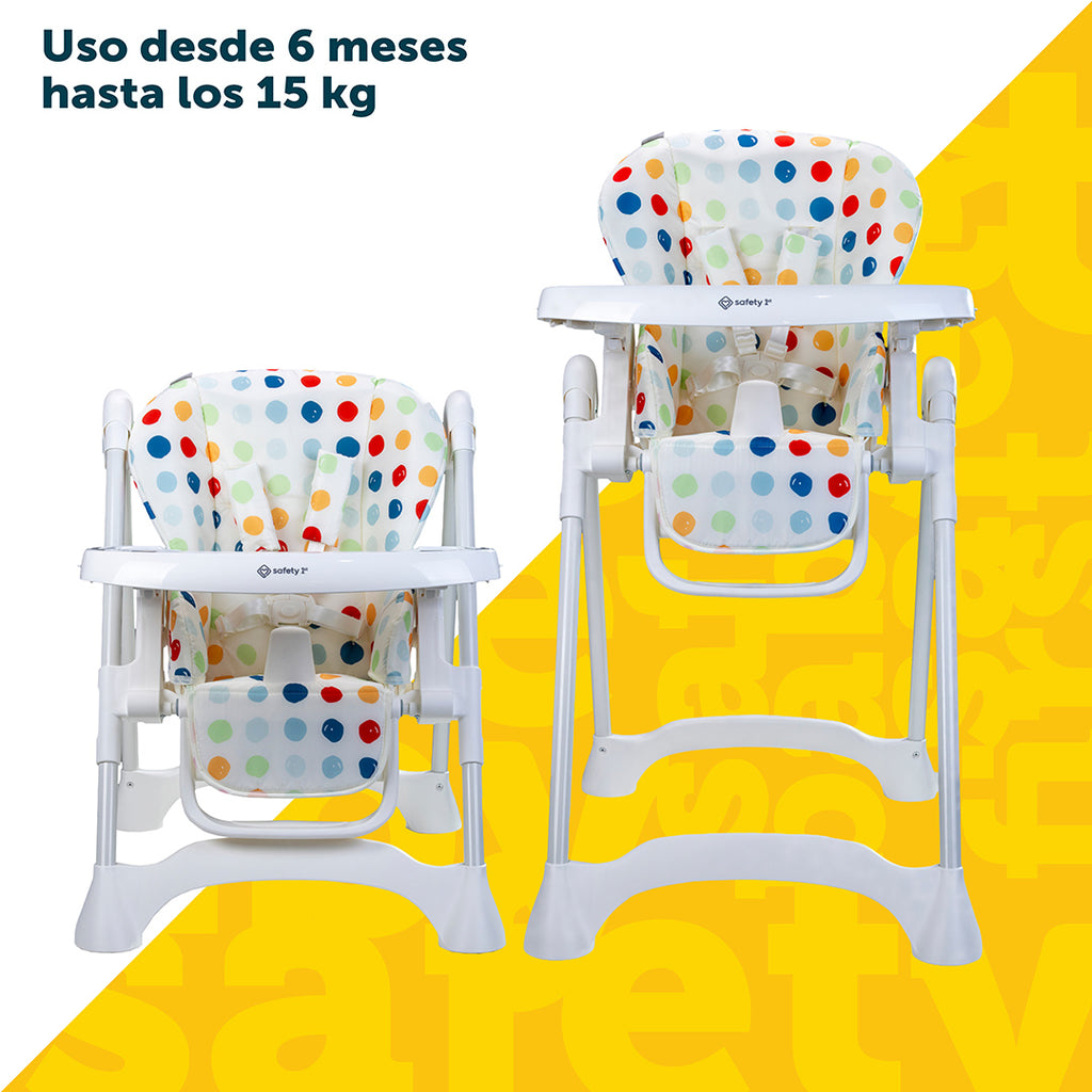 ¡Te encantará la silla alta Colors de Safety 1st! Podrá usarla desde los 6 meses hasta los 15 kg, adaptándose a cada etapa gracias a sus diferentes posiciones de altura.