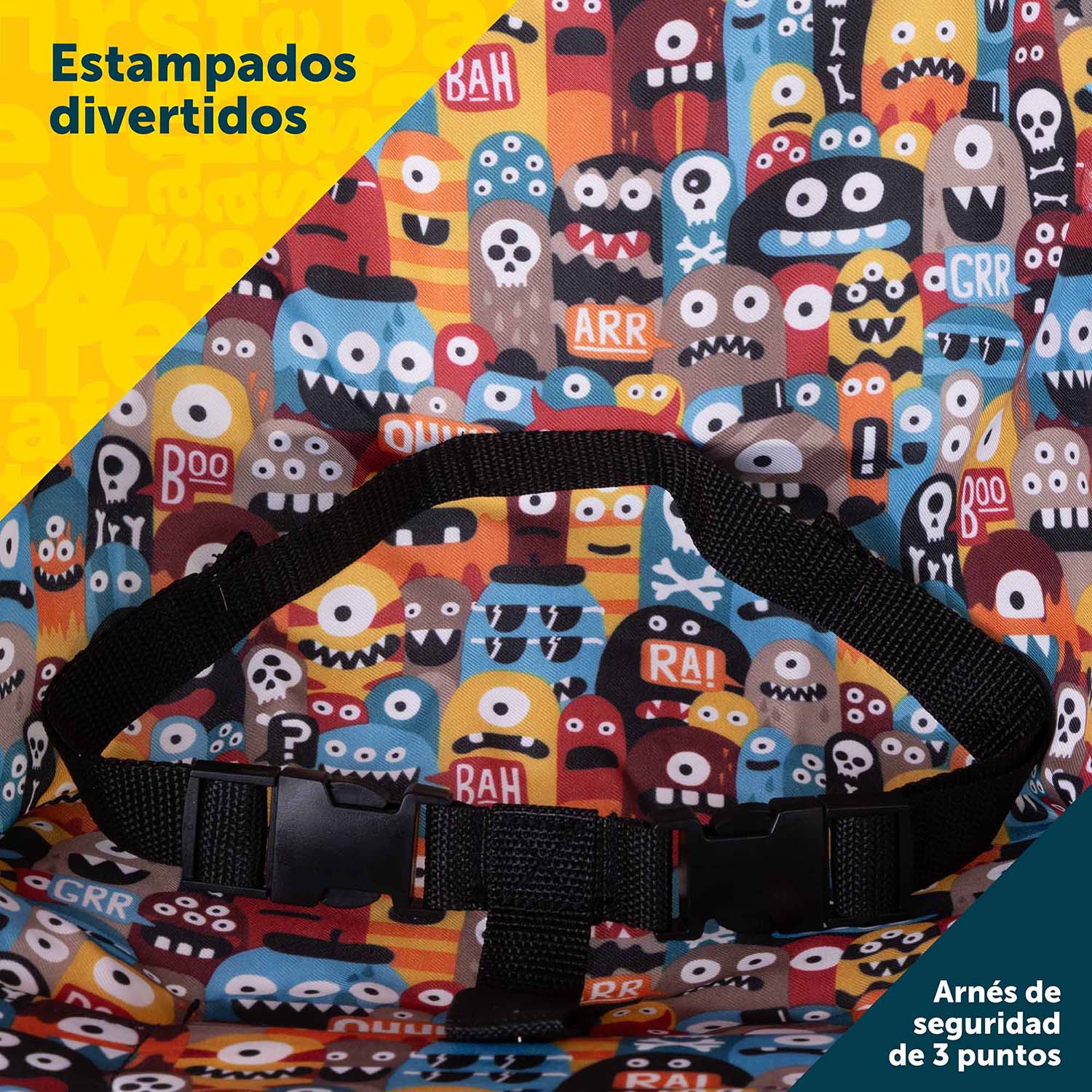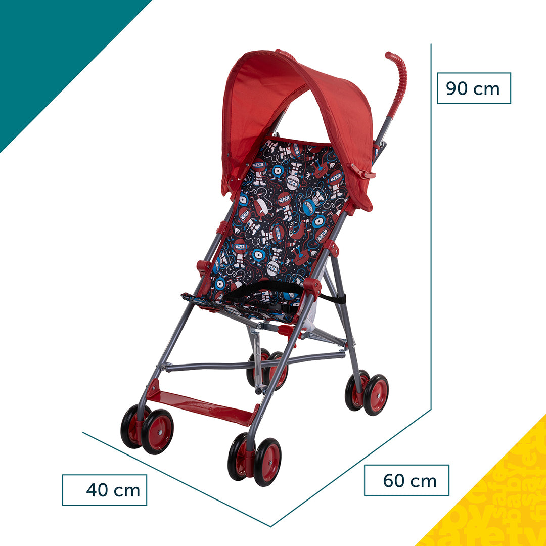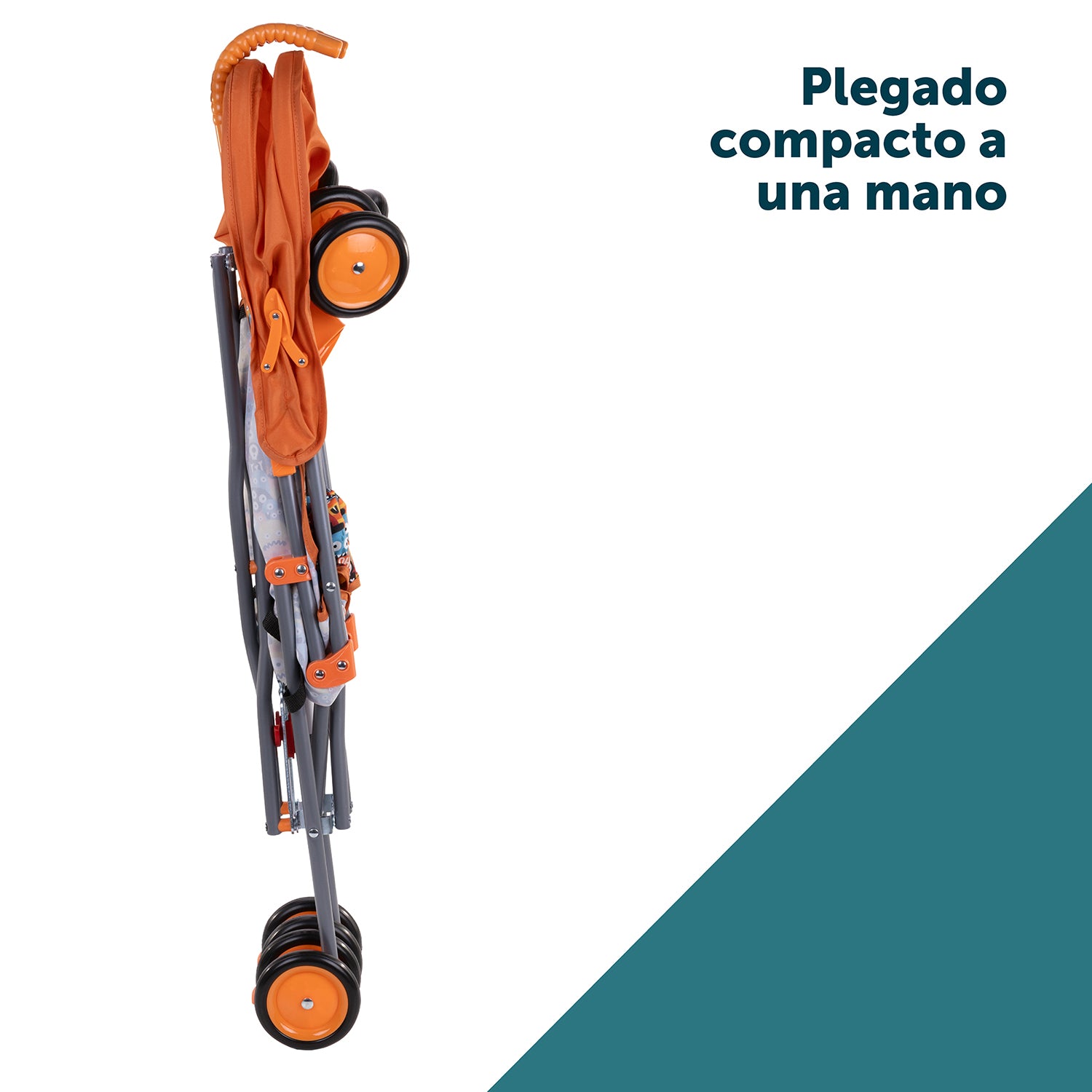 • Diseño.- Mango ergonómico tipo bastón, estampados divertidos, capota curva para mayor protección y cómodo reposapiés.