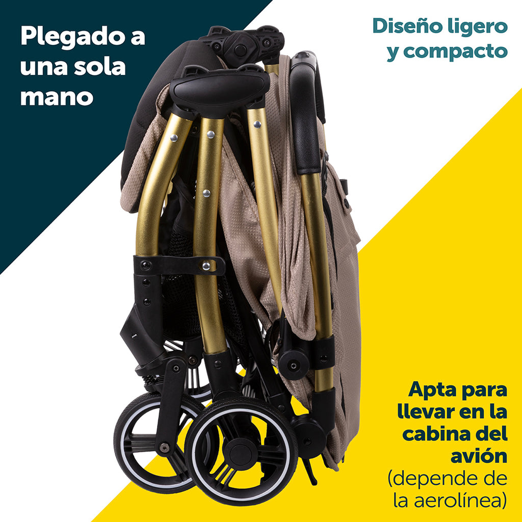 - Practicidad – Plegado automático a una sola mano, amplia canastilla de almacenamiento, apta para llevar en la cabina del avión (depende de la aerolínea)