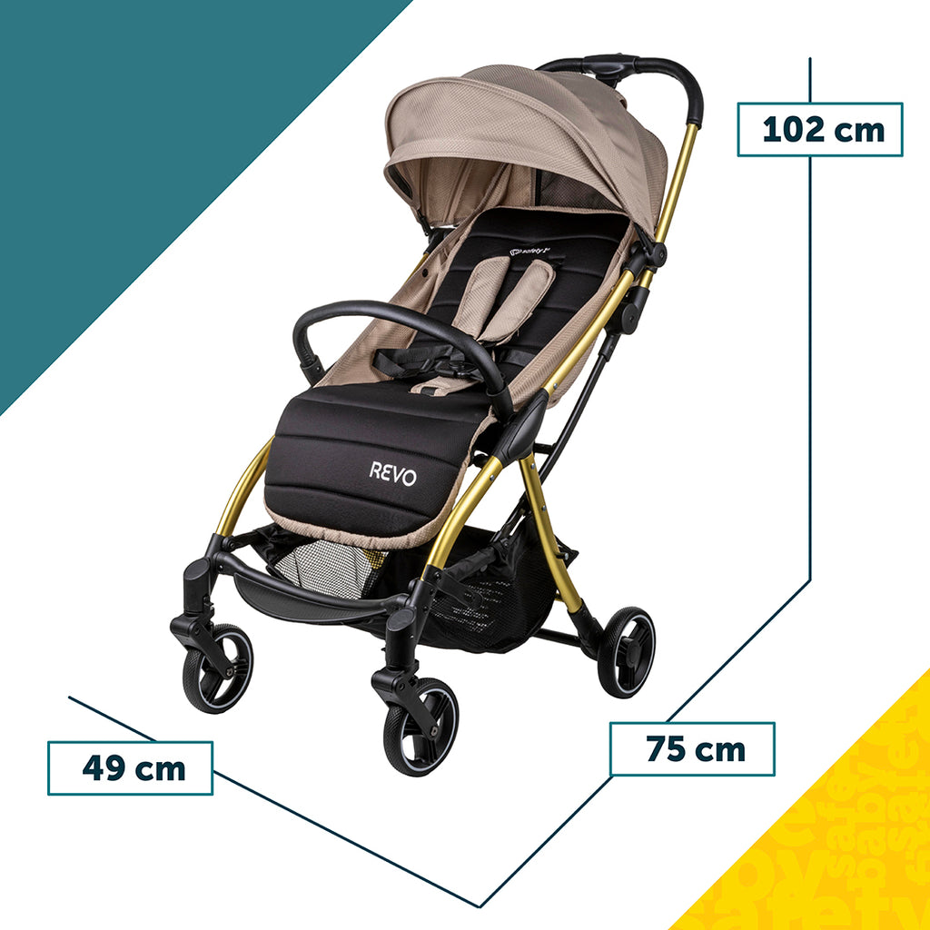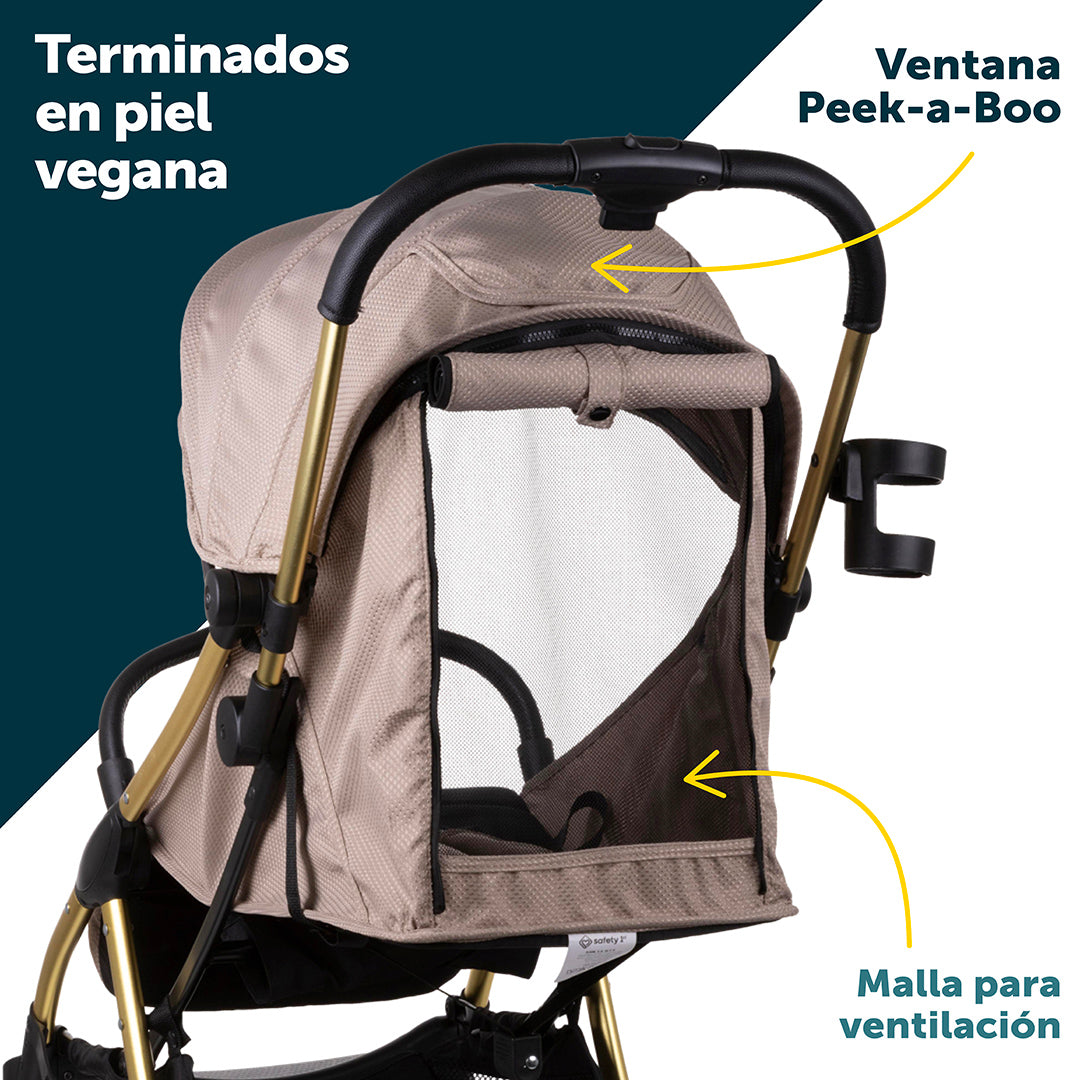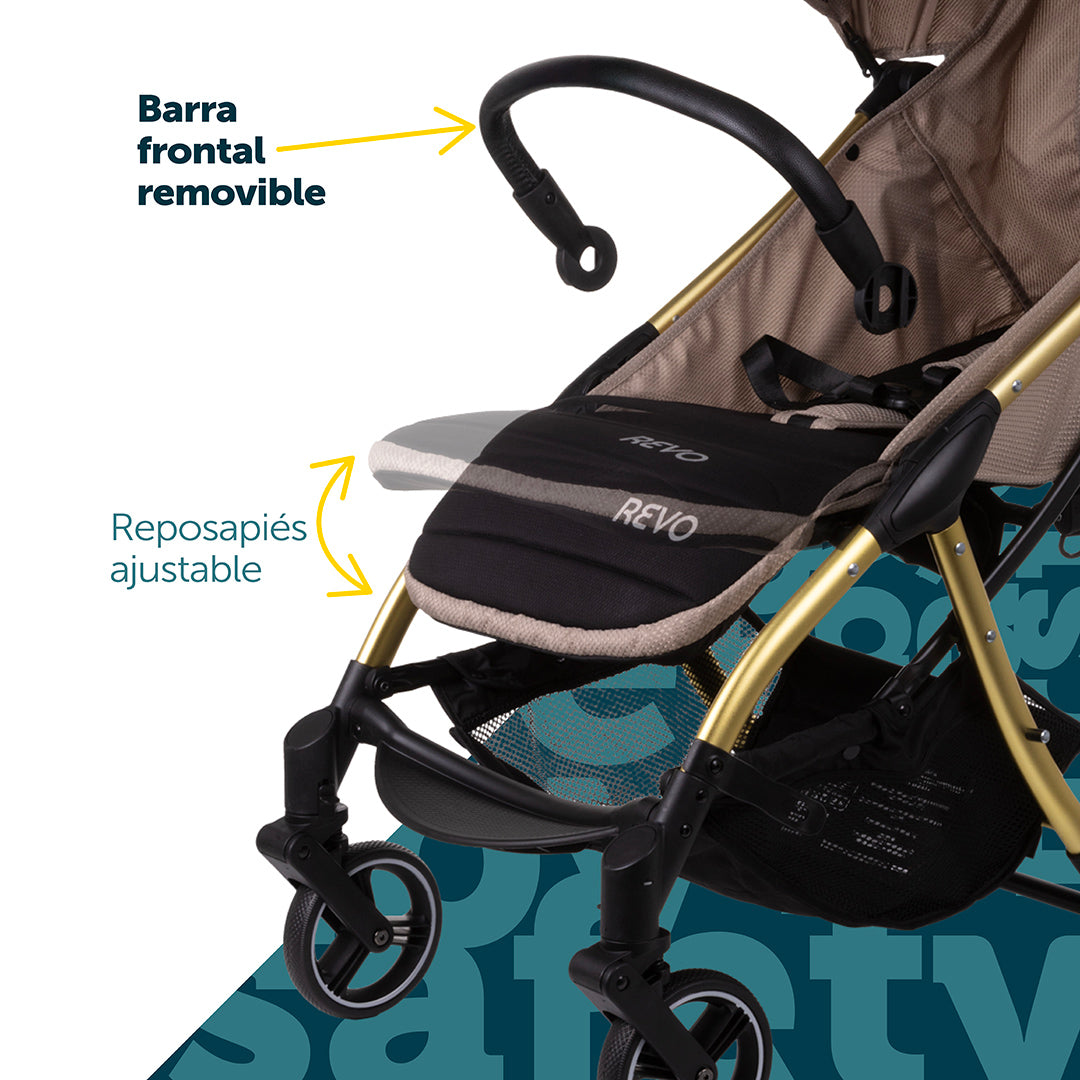 Disfruta de su plegado automático con una sola mano, amplia canastilla para todo lo que necesites llevar y un diseño ligero y compacto con marco de aluminio. ¡Ideal para viajes! Ya que puedes llevarla en la cabina del avión (Depende de la aerolínea). Te encantarán los detalles en piel vegana que le dan un look moderno y elegante. ¡La carriola Revo de Safety 1st está pensada para familias que buscan estilo, practicidad y seguridad!